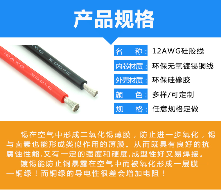 12AWG環保超軟航模硅膠連接線 廠家熱銷200℃高溫